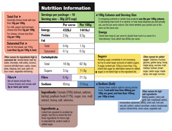 Use these guidelines when reading your nutrition label, and remember to use the per 100g column, especially when comparing products as serving sizes can be different amounts!