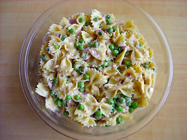 - Combine mixture + cooked pasta + cooked peas and toss all together.